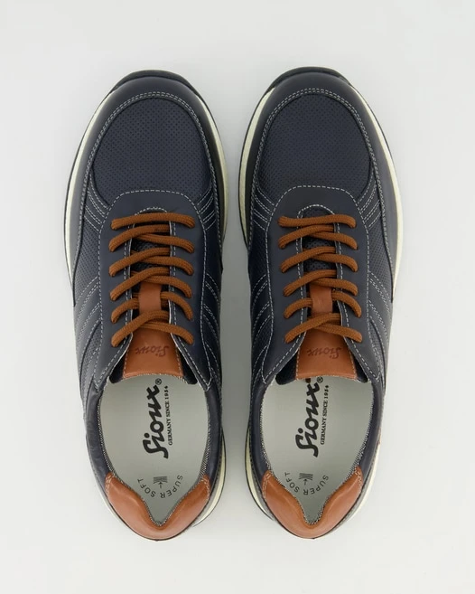 Diese Sneaker von Sioux für Herren sind genau das, was Sie brauchen. Leder dienen als Obermaterial, was dieses Paar ausgesprochen atmungsaktiv und resistent macht. Leder und Textil wurden als Innenmaterial verwendet. Farblich wurden sie in schönem Blau gehalten. Dieses Modell hat keinen Absatz. Ein wichtiges Merkmal des Freizeit Schuhs ist auch: